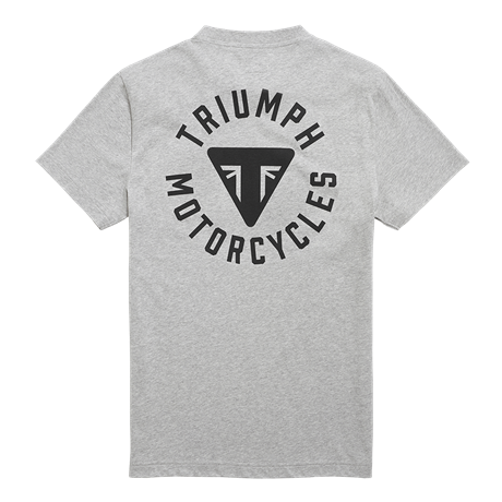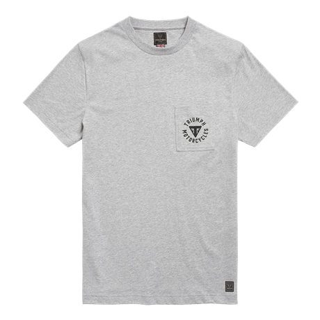 Soft 100% cotton tee in Grey with a classic patch chest pocket bearing Triumph roundel printed design on the front, featuring a larger roundel print on the back.